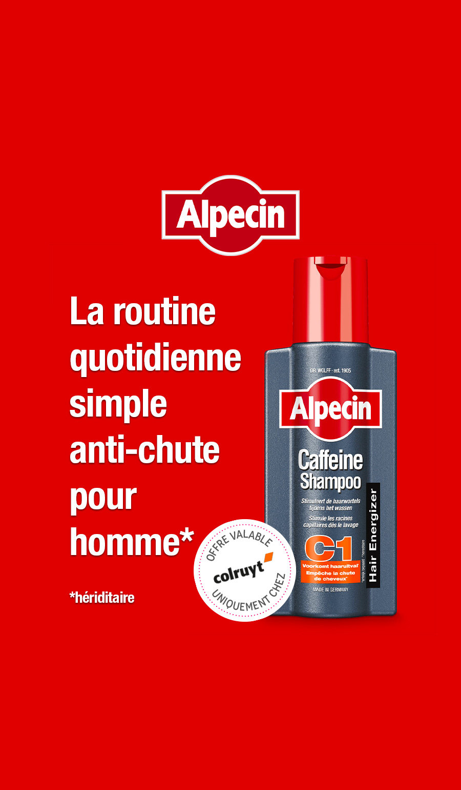 Alpecin Caféine Shampooing C1 - le shampooing pour homme contre la chute de cheveux héréditaire.