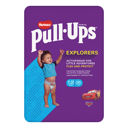 Les Huggies® Pull-Ups® Explorers sont des culottes conçues pour donner à vos aventuriers et aventurières à la fois une grande liberté de mouvement et une protection parfaite. À chaque pas, elles offrent un ajustement optimal autour de la taille et des jambes, de plus, leur ceinture à 360° est ultra-douce. Idéales pour sauter, courir, danser et explorer le monde.