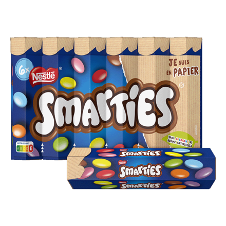 Le paquet de 6 SMARTIES NESTLÉ contient 6 tubes de chocolat au lait dans un enrobage croquant aux couleurs gaies.