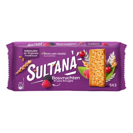Quels sont les ingrédients d’un mode de vie sain ? Un sommeil de qualité, de l’exercice physique et des Sultana FruitBiscuits. Ces FruitBiscuits contiennent du blé, des pommes, des fruits rouges, des raisins de Corinthe et des raisins secs. Pas de place pour des arômes et des colorants artificiels. Autres grands absents : les gargouillements d’estomac ! Car cet en-cas est une bonne source de fibres !