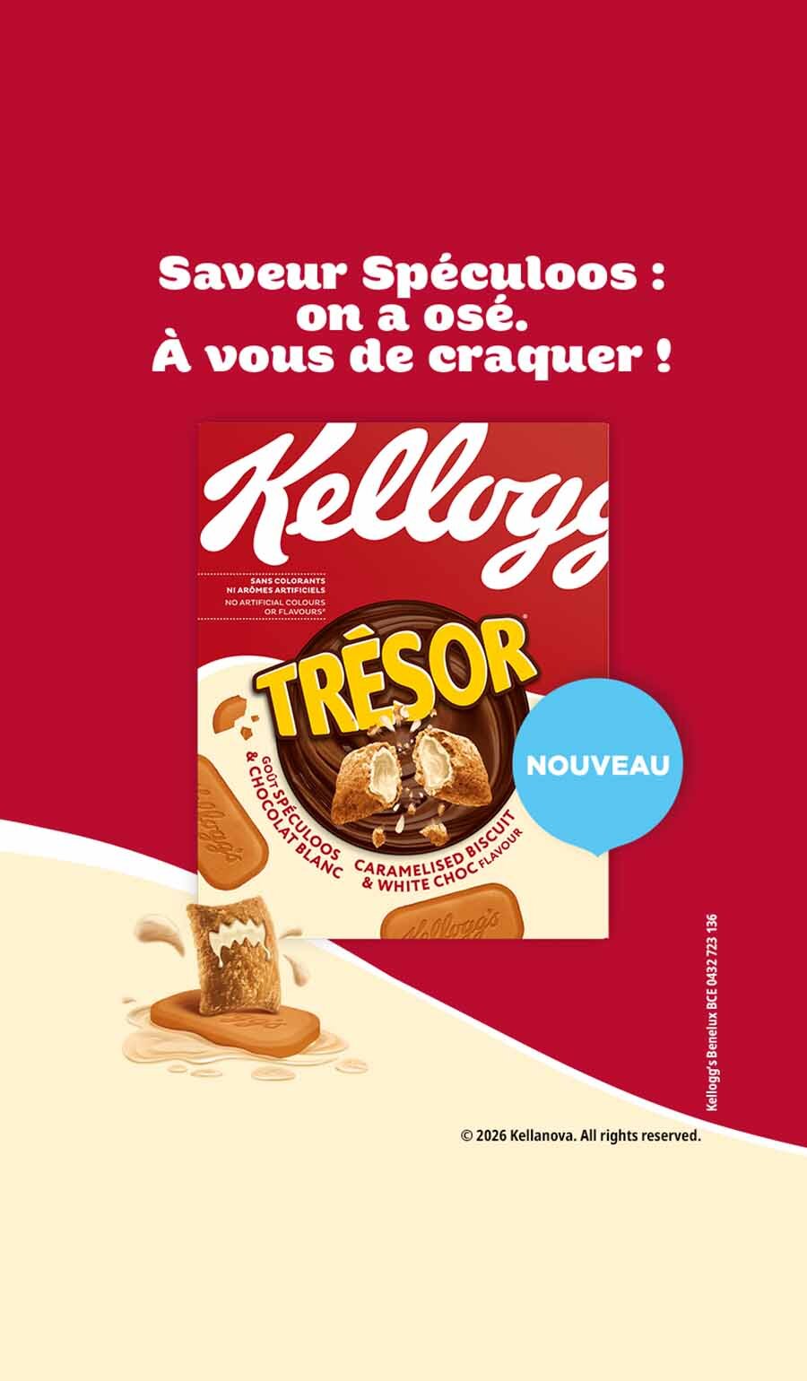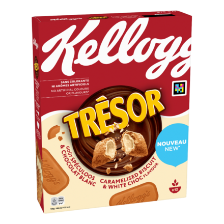 Kellogg's lance son nouveau produit Trésor. Un goût de Speculoos et chocolat blanc pour le bonheur de toute la famille.
