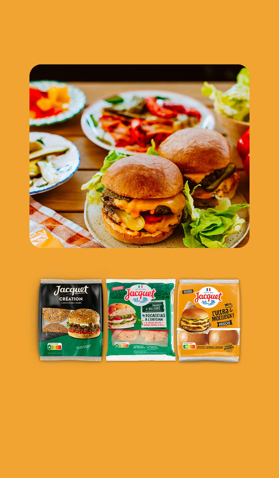 Met Jacquet laat u uw plezier de vrije loop! We werken al jaren aan de verbetering van de samenstelling van onze recepten, maar dat doen we om al uw manieren om ervan te genieten de vrije loop te laten. Jacquet biedt drie hamburgercreaties om u mee op reis te nemen: - De Ultra Moelleux voor de Amerikaanse hamburgers en de Graine. We zijn er trots op dat 100% van onze recepten vrij zijn van palmolie en dat 100% van onze burgers* nutriscore A of B hebben. Bovendien is het dankzij de 1.500 boeren in de landbouwcoöperatie waartoe we behoren dat we je onze gastronomische broden kunnen aanbieden, gemaakt van Franse tarwebloem.