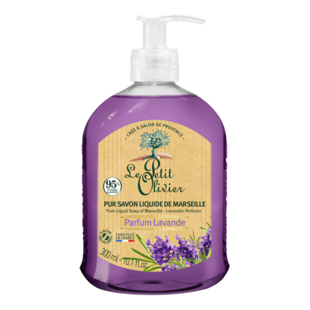 Vind alle authenticiteit van Petit Olivier terug in deze naar lavendel geurende vloeibare Marseille zeep. Gemaakt volgens de voorouderlijke knowhow van de Maîtres Savonniers, gekookt in een ketel en natuurlijk geglycerineerd voor een gereinigde huid.
