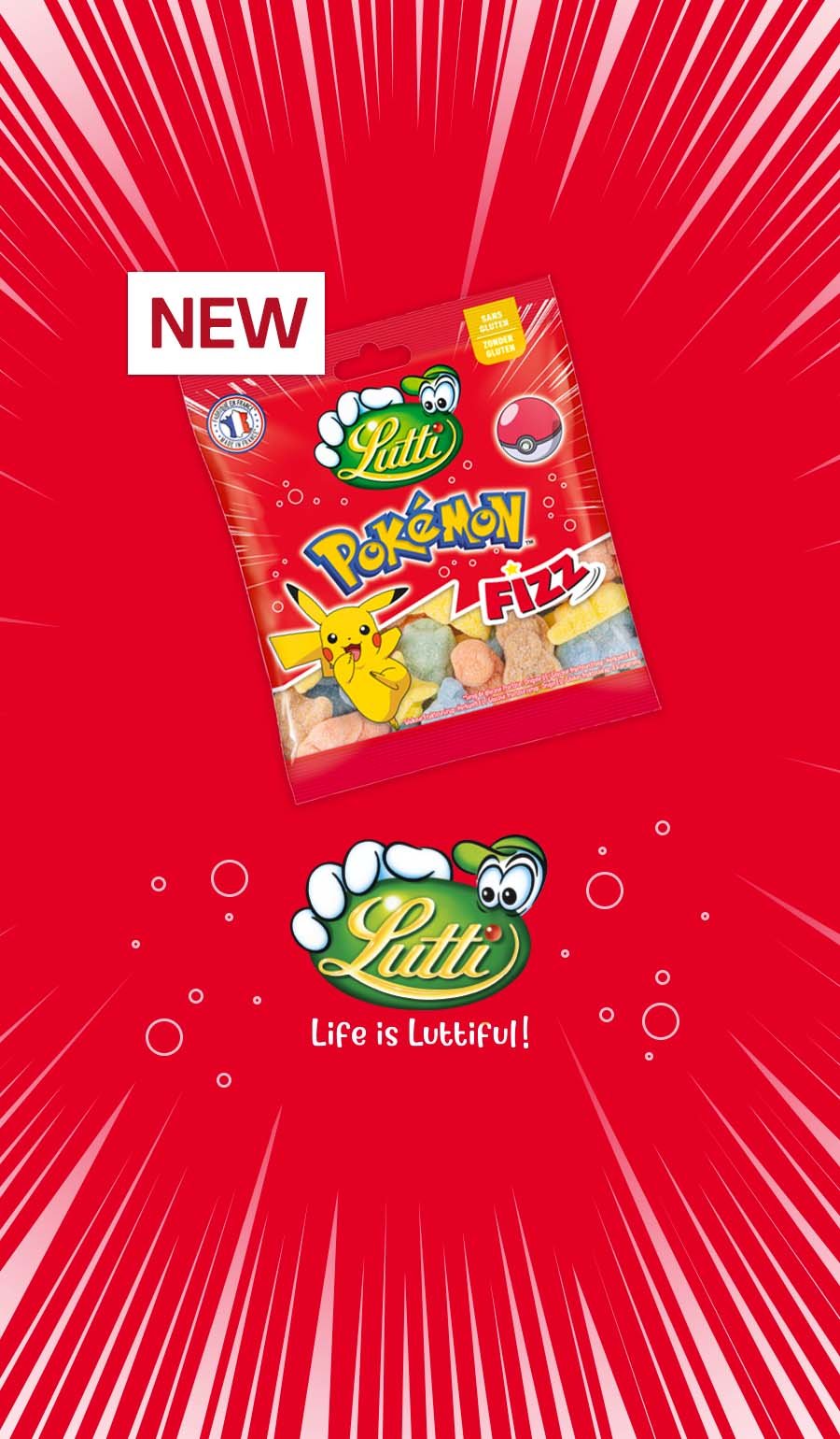 Ontdek Lutti Pokémon Fizz, heerlijke zure snoepjes in de vorm van een aantal van je favoriete Pokémon personages.
