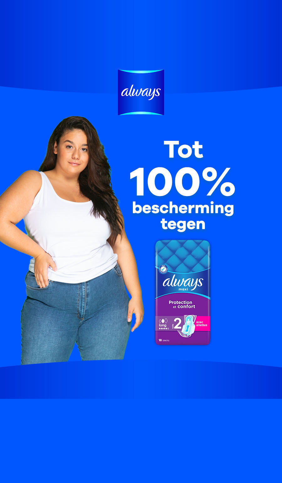 Always Maxi maandverband bieden je optimale bescherming en comfort wanneer je dat het meest nodig hebt. Dikke maandverband die tot 100% bescherming bieden dankzij hun antilekbarrières en ultraabsorberende kern.