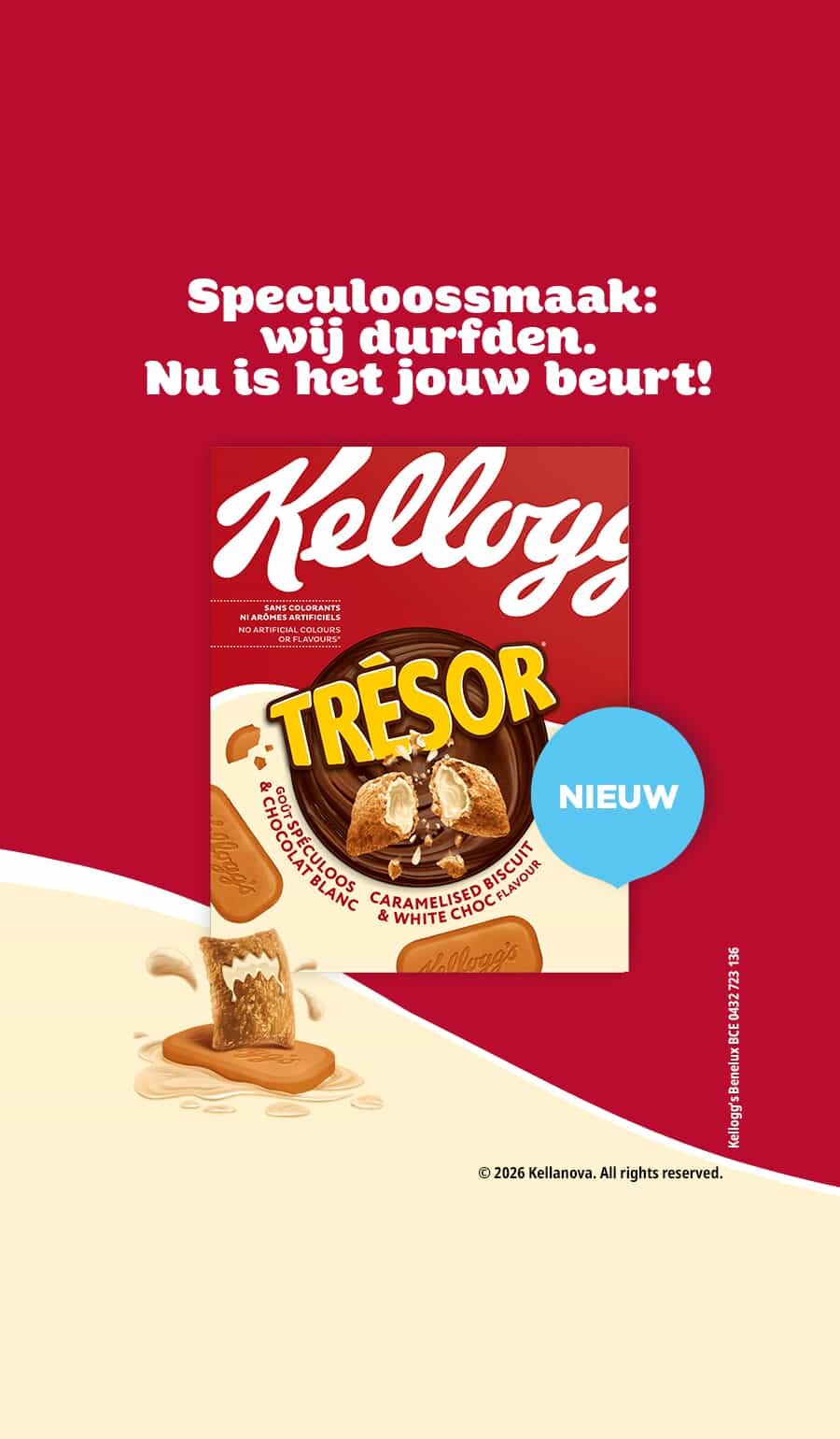 Kellogg's lanceert zijn nieuwe product Trésor. Een smaak van speculaas en witte chocolade waar het hele gezin van zal genieten.