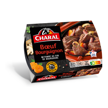 Le Bœuf Bourguignon Charal est élaboré à partir de muscles, 100% viande de bœuf française, sélectionnés pour leur fondant et leur goût à la cuisson. Mijotée doucement pendant plusieurs heures avec du vin rouge de Bourgogne, des carottes et des champignons, la viande révèle toutes ses saveurs. Une recette authentique et gourmande à accompagner selon vos envies !