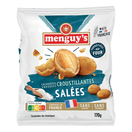 - Cacahuètes enrobées croustillantes Salées 170g Menguy's (1,55€)