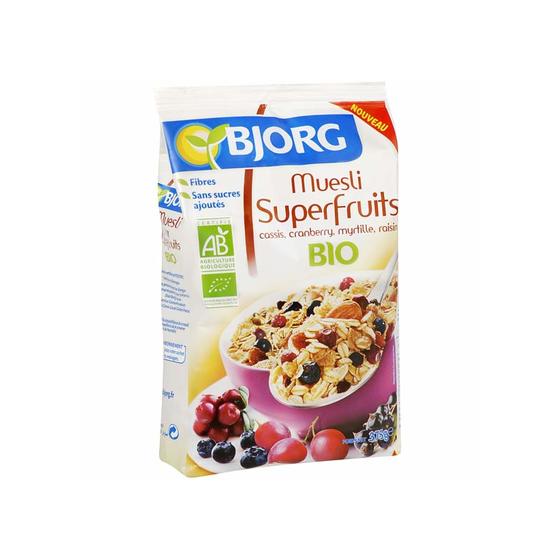 Découvrez notre délicieux Muesli aux Superfruits Bjorg.