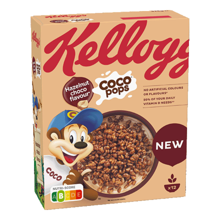Nouveau ! Découvrez Coco Pops goût chocolat noisettes de Kellogg's, de délicieuses céréales de riz soufflé pour la première fois enrobées d'une saveur chocolat noisettes !
