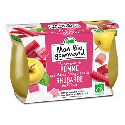 - Ma compote BIO de pomme des Alpes Françaises et de rhubarbe de l'Oise (2,19€)