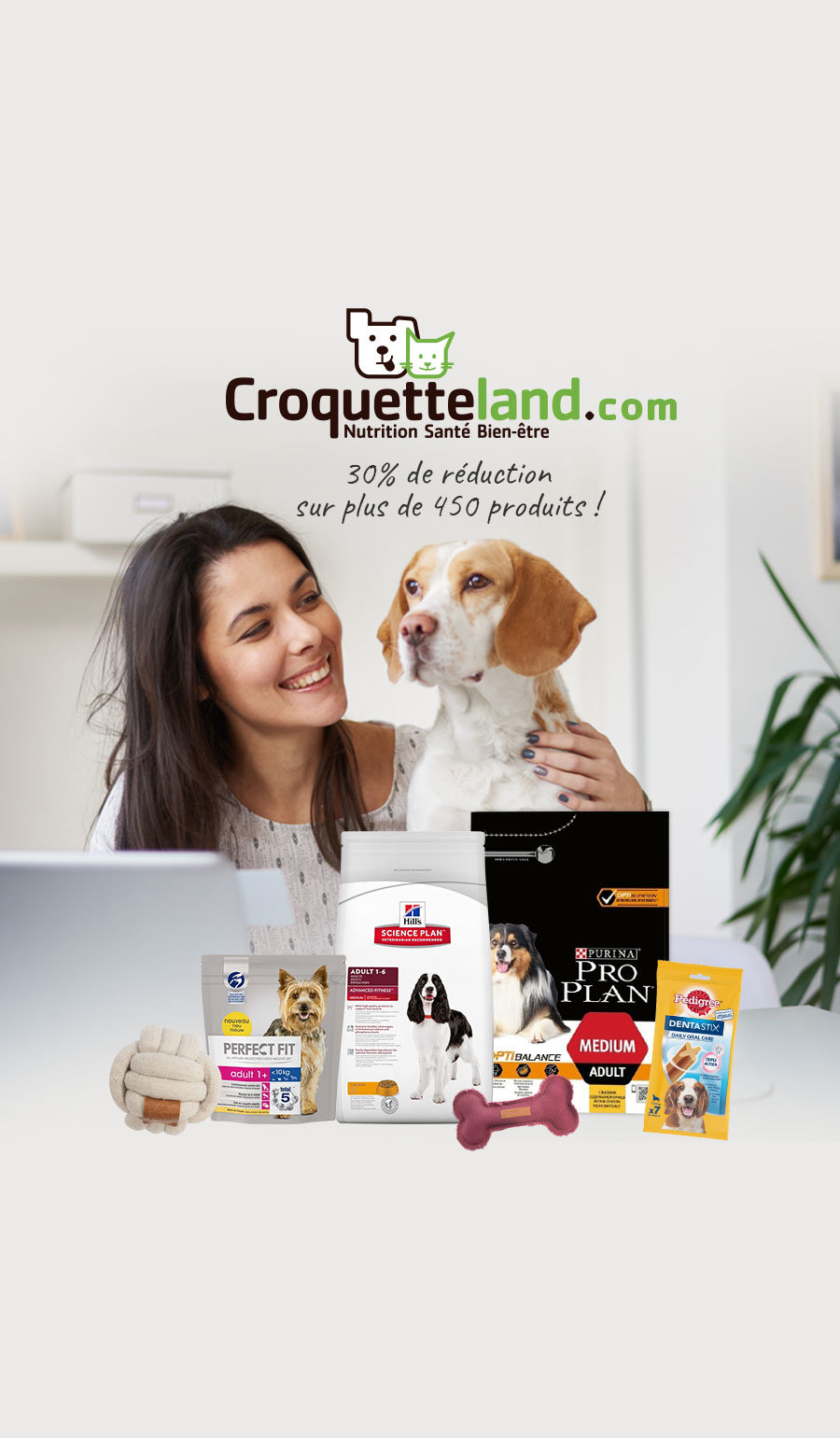 Croquetteland met à votre disposition un choix de 6500 références de qualité, à des prix compétitifs, de nombreuses marques (Mars petcare, Hill’s, Proplan Purina…) et des gammes spécialisées (bio, sans céréales, vétérinaire) afin de répondre à tous les besoins de vos animaux (surpoids, infections urinaires, allergies…).