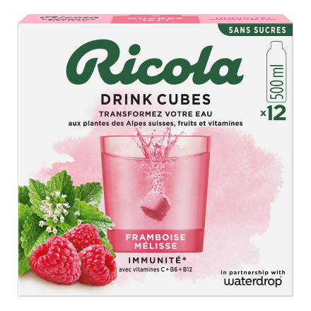 Transformez votre routine d’hydratation quotidienne en un plaisir naturellement savoureux avec le cube à dissoudre dans l'eau Ricola Frambosie Mélisse, que ce soit à la maison, au bureau ou en déplacement. Plongez un cube dans l’eau et laissez la magie opérer dans votre verre !