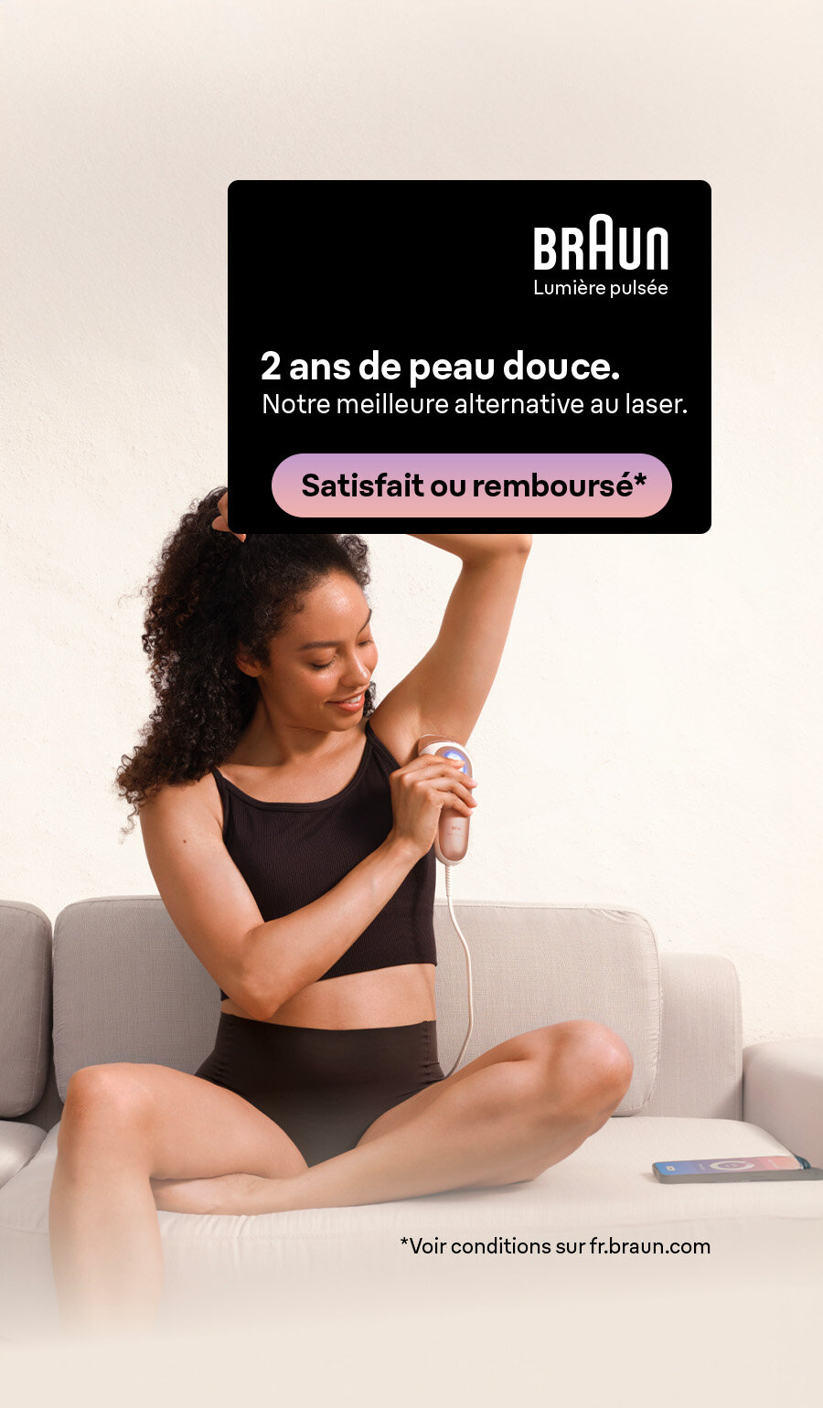 Offre valable sur tous les épilateurs à lumière pulsée Braun disponibles sur fr.braun.com.
