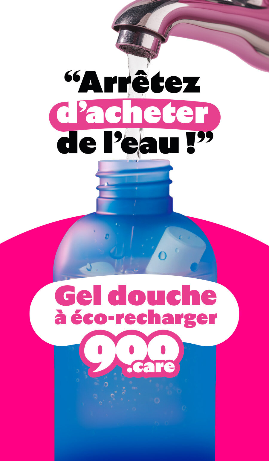 Chez 900.care, on ne vous vend ni eau, ni plastique jetable, juste les 10% d'ingrédients actifs.