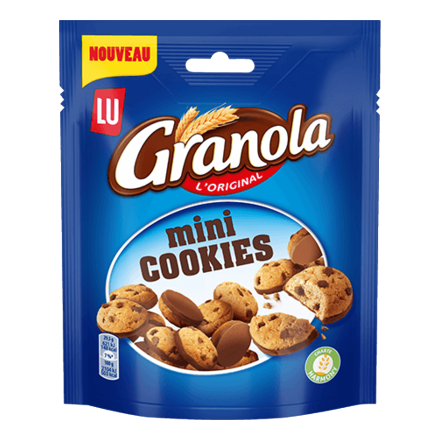 Retrouvez les savoureux cookies Granola en version mini, croustillants et gourmands avec leurs délicieuses pépites et leur nappage au chocolat au lait pour un MAXI PLAISIR !