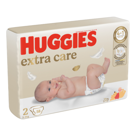 Huggies Extra Care est la gamme spécialement conçue pour la protection de la peau délicate de bébé avec ses bénéfices 4 en 1 : matériaux doux, absorbants, respirants et hypoallergéniques. Les couches et culottes sont sans parfum, latex ni chlore élémentaire. La ceinture douce et élastique permet de s'adapter au ventre de bébé qui grandit. Des matériaux ultra doux au contact de la peau de bébé lui permettent d'être à l'aise jour et nuit. Ils sont super absorbants et respirants pour une peau toujours au sec et protégée. L'indicateur d'humidité devient bleu lorsqu'il faut changer bébé. L'emballage plastique est recyclable et contient 30% de plastique recyclé.