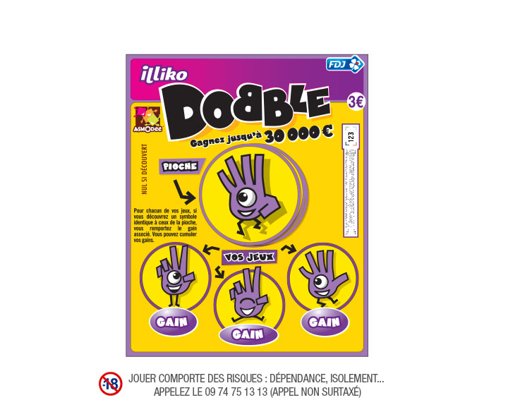 *Opération promotionnelle organisée par La Française des Jeux en application du décret n°78-1067 modifié et réservée aux personnes majeures. Toute demande de remboursement est limitée à une par personne (même nom, même prénom, même date de naissance et même adresse email). Toute participation implique l’adhésion au règlement du jeu de loterie instantanée « Dobble » publié au Journal officiel et disponible sur www.fdj.fr. Remboursement de 1,50€ pour l’achat dans les points de vente FDJ® d’un ticket Dobble d’une valeur de 3€, ayant le code jeu 606 et le numéro d’émission n°01, selon les modalités de remboursement de Shopmium. Demande recevable à compter du 18/01/2017 à 10:00 et dans la limite de 17 000 demandes.
