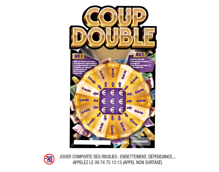 Opération promotionnelle organisée par La Française des Jeux et réservée aux personnes physiques majeures. Toute demande de remboursement est limitée à une par personne (même nom, même prénom, même date de naissance et même adresse email). Toute participation implique l’adhésion au règlement du jeu de loterie instantanée « COUP DOUBLE » disponible sur fdj.fr. Remboursement de 2,00€ pour l’achat dans les points de vente FDJ d’un ticket COUP DOUBLE d’une valeur de 5,00€, ayant le code jeu 888, émission n°1, selon les modalités de remboursement de Shopmium. Demande recevable à compter du 17/05/2021 à 10:00 et dans la limite de 10 000 demandes.