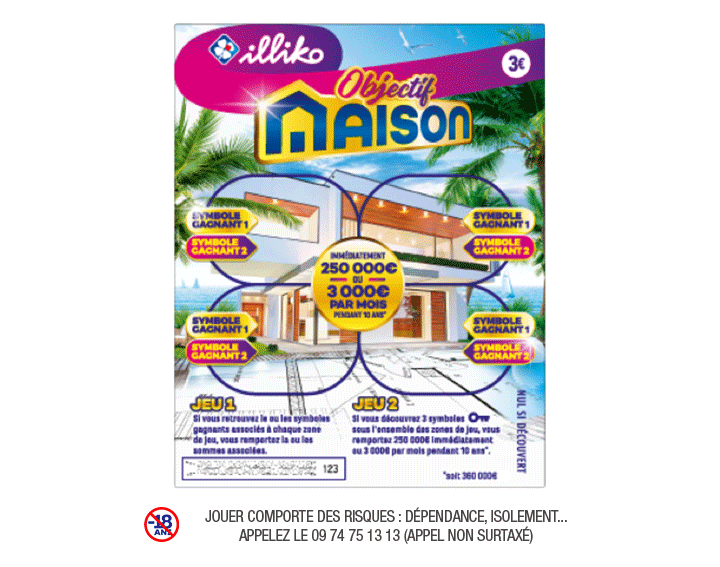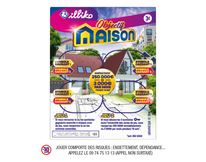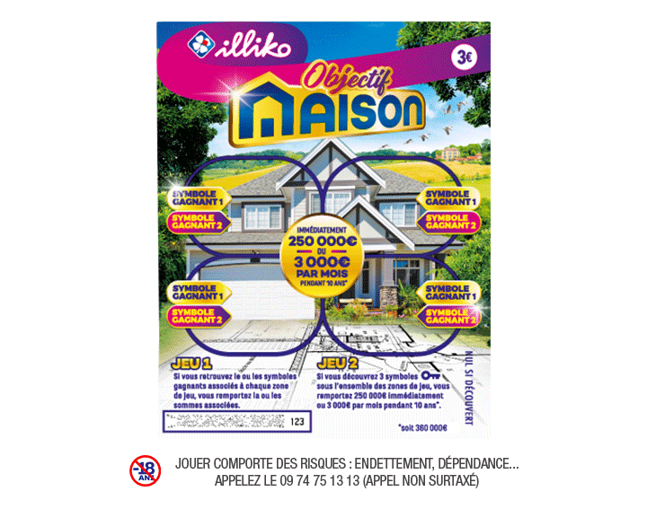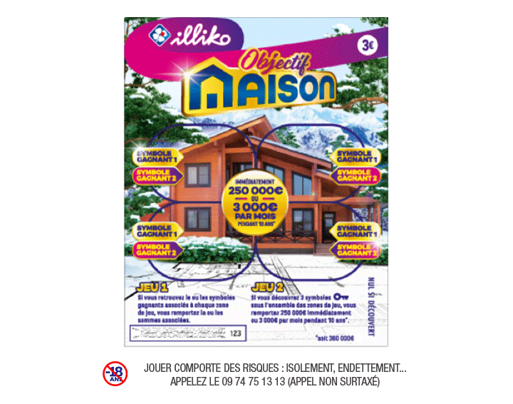 Opération promotionnelle organisée par La Française des Jeux et réservée aux personnes physiques majeures. Toute demande de remboursement est limitée à une par personne (même nom, même prénom, même date de naissance et même adresse email). Toute participation implique l’adhésion au règlement du jeu de loterie instantanée « OBJECTIF MAISON » disponible sur fdj.fr. Remboursement de 1,00€ pour l’achat dans les points de vente FDJ® d’un ticket OBJECTIF MAISON d’une valeur de 3,00€, ayant le code jeu 698, émission n°1, selon les modalités de remboursement de Shopmium. Demande recevable à compter du 18/01/2021 à 10:00 et dans la limite de 20 000 demandes.