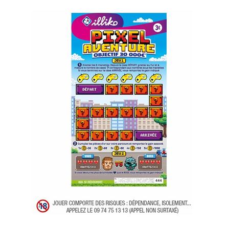 Opération promotionnelle organisée en France Métropolitaine, Monaco, DOM et COM (sauf Wallis, Futuna et la Polynésie Française) par La Française des Jeux en application du décret n°78-1067 modifié et réservée aux personnes majeures. Toute participation implique l’adhésion à l’additif temporaire relatif à l’opération et au règlement du jeu de loterie instantanée « PIXEL AVENTURE », publiés au Journal Officiel et disponibles sur fdj.fr. Remboursement de 2,00€ pour l’achat dans les points de vente FDJ® d’un ticket PIXEL AVENTURE d’une valeur de 3,00€, ayant le code jeu 655 et le numéro d’émission n°01, selon les modalités de remboursement de Shopmium. Demande recevable à compter du 05/06/2018 à 10:00 et dans la limite de 20 000 demandes.