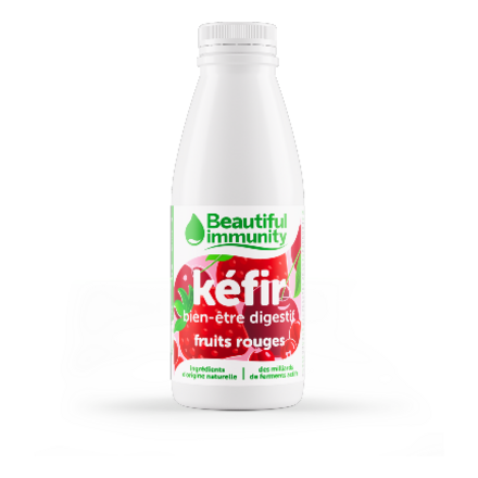 Kéfir aux fruits rouges, le kéfir de Beautiful Immunity contient des milliards de ferments vivants de kéfir et de probiotiques.