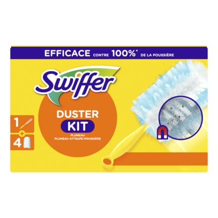 Le plumeau Swiffer Duster est efficace contre 100 % de la poussière (fonctionne sur tous les types de poussières domestiques) grâce à ses milliers de fibres duveteuses qui attrapent la poussière, la saleté et les poils comme un aimant sur toutes les surfaces et même dans les endroits difficiles d’accès sans les disperser dans votre maison.