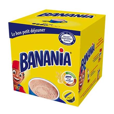 Découvrez les capsules compatibles Nescafé®* Dolce Gusto®* : la recette unique Banania (du cacao, des céréales et une touche de banane) dans une boisson rapide et facile à préparer !