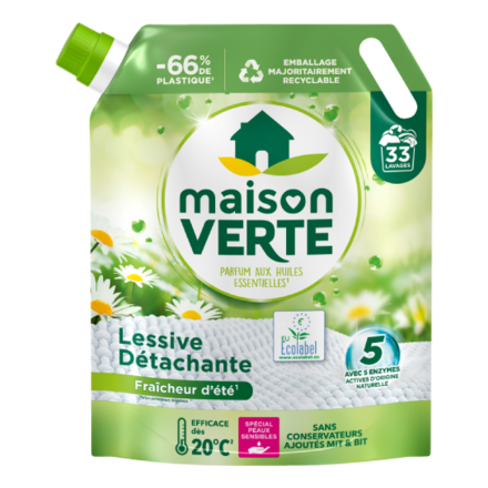 - Maison Verte Lessive Doypack Fraicheur d'été 33 lavages (7,70€)