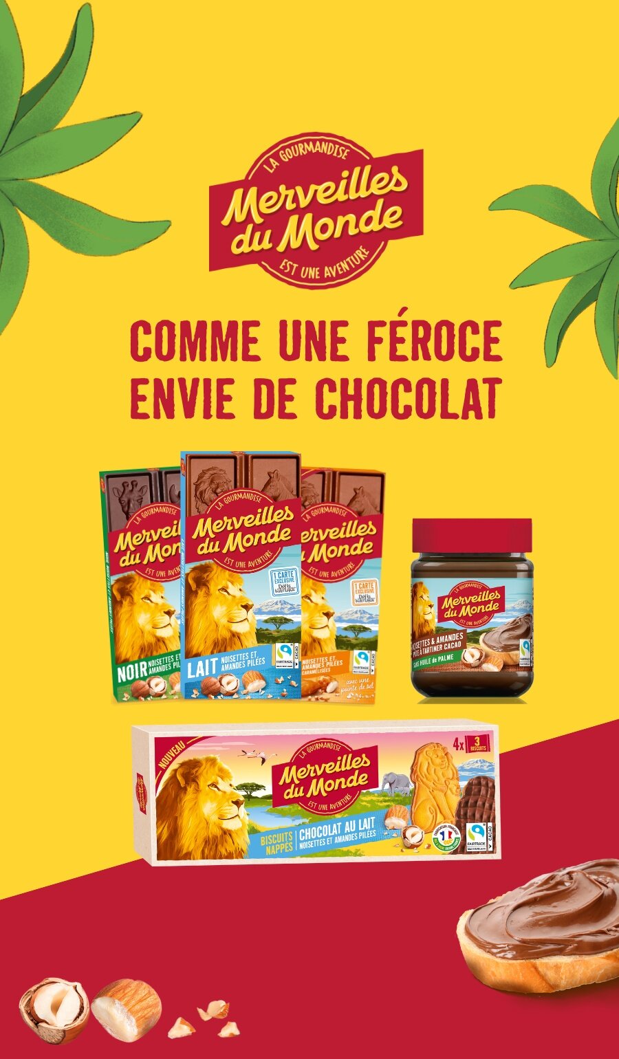 A l'heure du goûter, craquez pour nos tout nouveaux biscuits Merveilles du Monde. Tout le plaisir du chocolat Merveilles du Monde dans de délicieux biscuits au beurre croquants, aux noisettes et amandes pilées, au chocolat au lait fondant. Des recettes savoureuses et naturelles, sans huile de palme, pour régaler toute la famille.