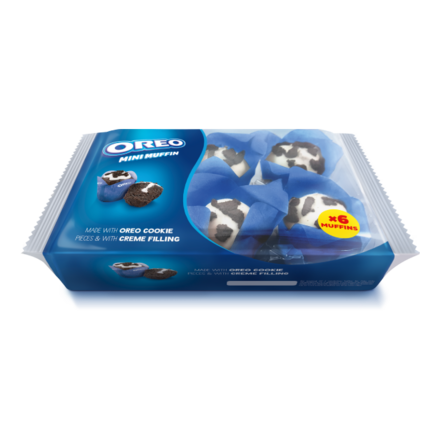 Régalez-vous avec un muffin ou un donut Oreo, avec de vrais morceaux de biscuits Oreo et un onctueux fourrage goût vanille.