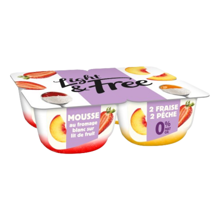 - LIGHT & FREE Mousse Recette au Fromage Blanc lit de fraise / pêche x4 (2,39€)