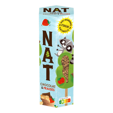 Retrouvez vos recettes simples & uniques au rayon céréales : NAT Céréales Miel & Amandes (Nutriscore A), NAT Céréales Choco & Fraises (Nutriscore B), NAT Ourson Miel (Nutriscore A) - Nat Ourson Chocolat (Nutriscore B).