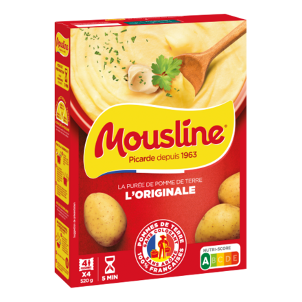 Retrouvez le goût unique de la purée Mousline L’Originale, celle qui réunit petits et grands autour de la table. Préparée avec des pommes de terre 100% françaises, cultivées dans les Hauts-de-France, elle offre une texture onctueuse et un goût authentique, sans colorant ni arôme. Facile et rapide à préparer!