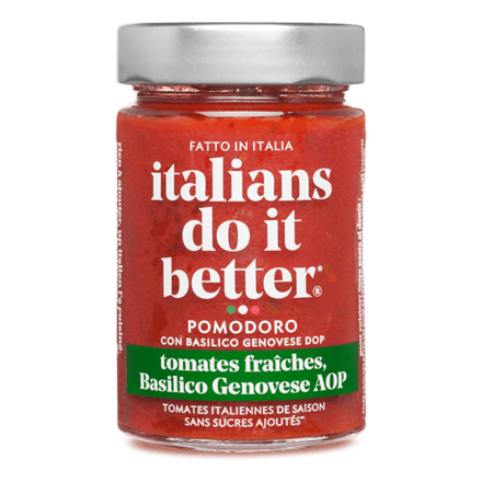 Italians do it better, c'est une PME qui s'est donnée une mission: démocratiser une alimentation italienne saine et gourmande. Toutes nos sauces tomates sont cuisinées dans le Piémont, à base de tomates fraîches italiennes de plein champ récoltées de août à octobre.