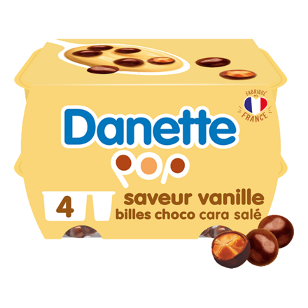 - Danette Pop Saveur Vanille Billes Choco Caramel 4x117g (2,59€)