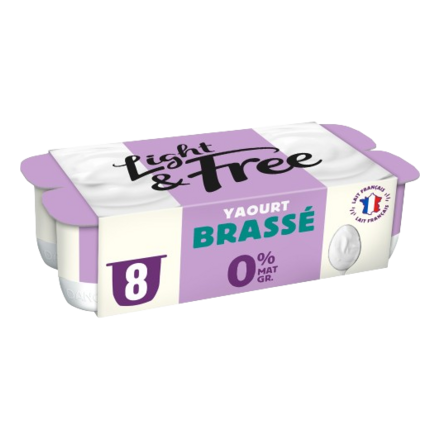 Light&Free recette de yaourt brassé 0% MG est source de vitamines D, de calcium et riche en protéines. Sa texture brassée et onctueuse en pot en fait l'allié idéal du dessert ou du petit-déjeuner à partager, pour un plaisir en toute légèreté !