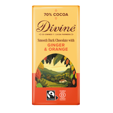 - Divine 70% Dark Chocolate with Ginger & Orange (£3.50)