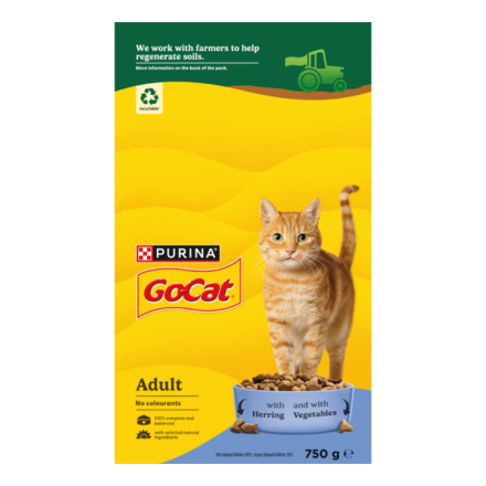 - PURINA Go-CAT® Adult with Herring and with Vegetables Dry Cat Food 750g (£3.11)