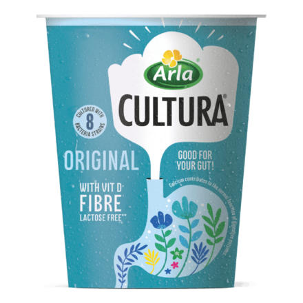 Our Arla Cultura® original gut health yogurt has a unique combination of 8 bacteria cultures, calcium, vitamin D, protein and fibre. This diverse blend makes a deliciously fresh and creamy addition to your everyday diet that is good for your gut* It is also lactose free**