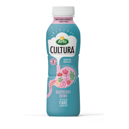 Our Arla Cultura® Raspberry gut health milk drink has a unique combination of 8 bacteria cultures, vitamins D & B2, calcium, protein and fibre. This diverse blend makes a fruity and surprisingly sparkling dairy drink that is good for your gut* . They are also lactose free**