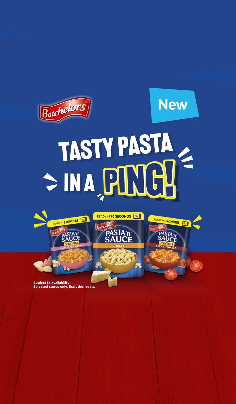 - Batchelors Pasta n Sauce ravioli microwave meal beef & tomato 300g (£3.00)