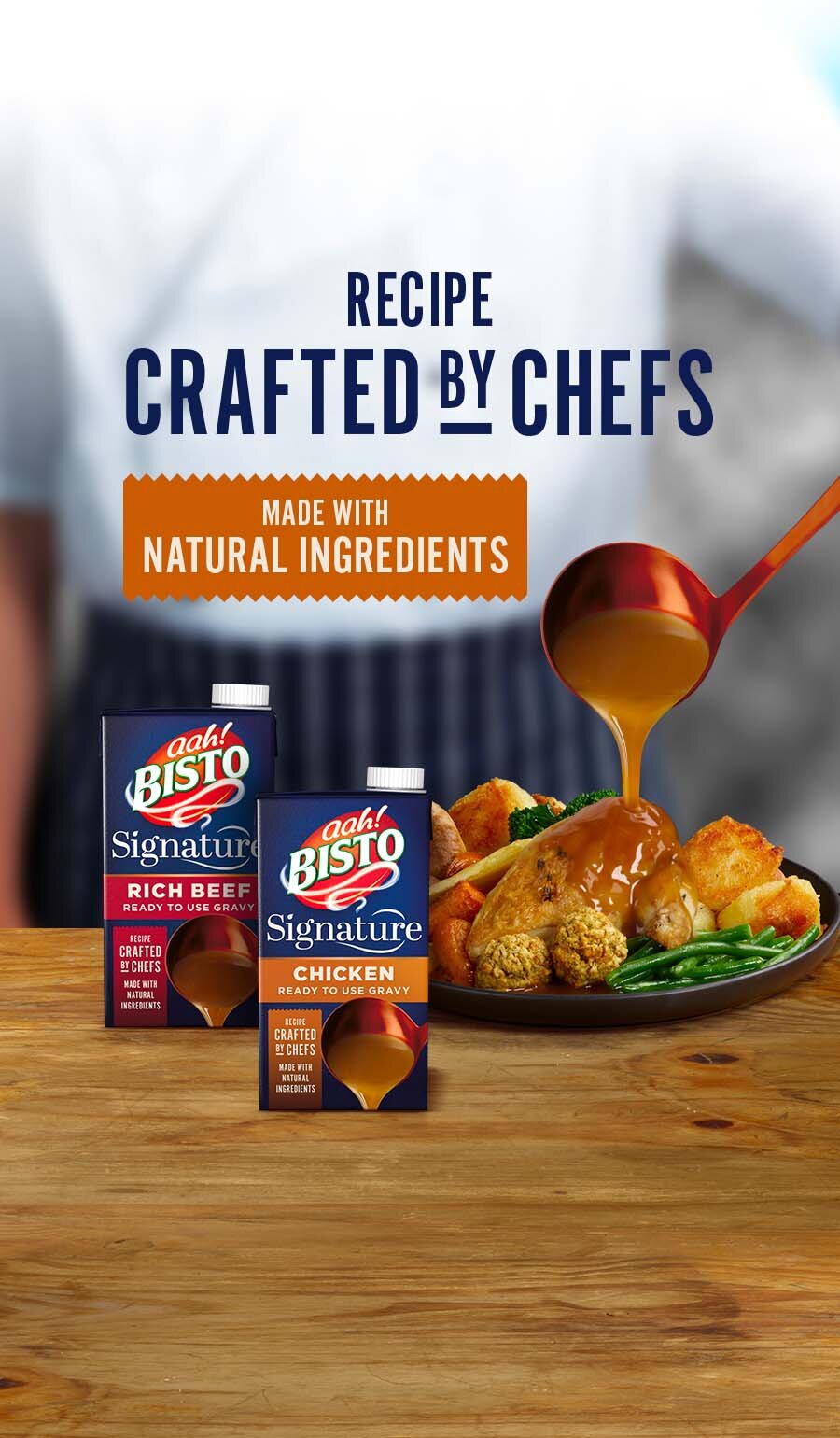 Bisto's Signature Ready to Use Rich Beef was expertly crafted by our chefs with natural ingredients, slowly simmered with succulent meat juices for maximum flavour.