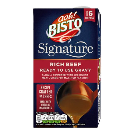 Bisto's Signature Ready to Use Rich Beef was expertly crafted by our chefs with natural ingredients, slowly simmered with succulent meat juices for maximum flavour.