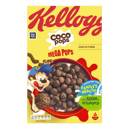 Coco Pops Mega Pops are high in fibre and supports your family's health with Iron & Vitamin D*. Kellogg's Coco Pops Mega Pops breakfast cereal is made with natural grains and no artificial colours or flavours. Kellogg's Coco Pops Mega Pops breakfast cereal contains 50% of your daily vitamin D needs*.