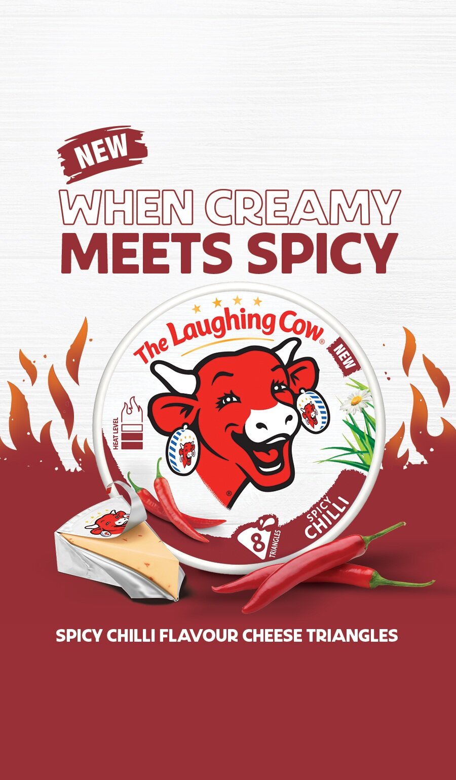 Experience the perfect fusion of creamy and spicy! The Laughing Cow's signature smooth cheese gets a fiery twist with bold chilli peppers, creating an exciting flavour adventure in every bite.