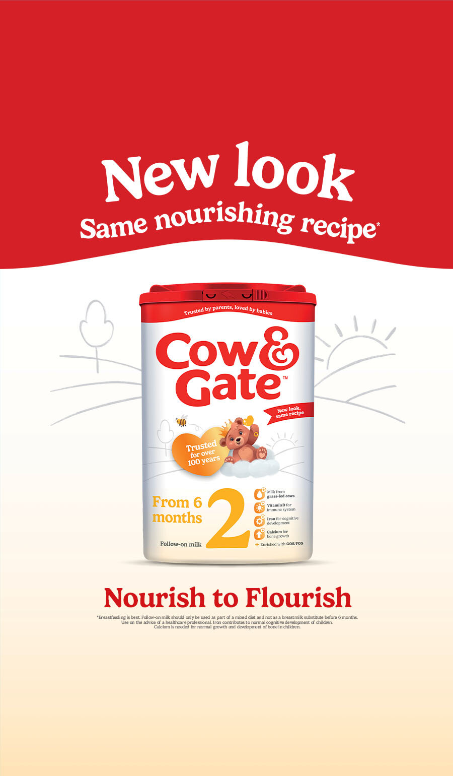 Cow & Gate Follow-on milk is enriched with important nutrients to support your little one's nutritional needs, from when they start their weaning journey, right up until their first birthday.