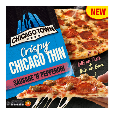 - Chicago Town Crispy Chicago Thin Sausage & Pepperoni Large Pizza 431g (£4.00)