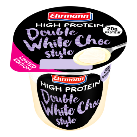 High Protein, High Power! For all the white chocolate lovers: Discover our High Protein Double Pudding. Our popular High Protein white chocolate pudding is topped with an extra creamy white chocolate protein topping for maximum guilt-free indulgence. As always, our products contain 20 grams of protein, are lactose-free, gluten-free, and low-fat, and have no added sugar.