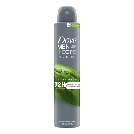 New Dove Men+ Care Advanced, our most effective antiperspirant yet. With patented Triple Action Technology to give you 72H protection and comfortable feeling skin.